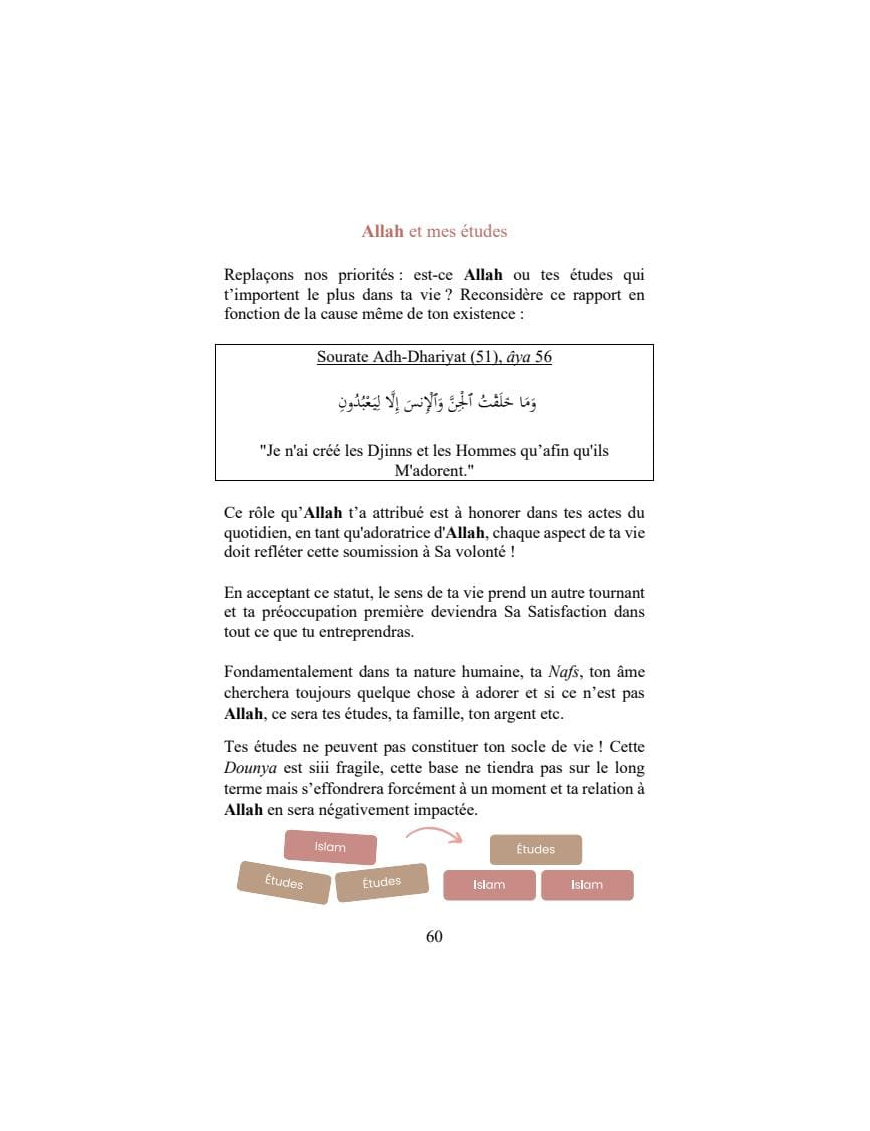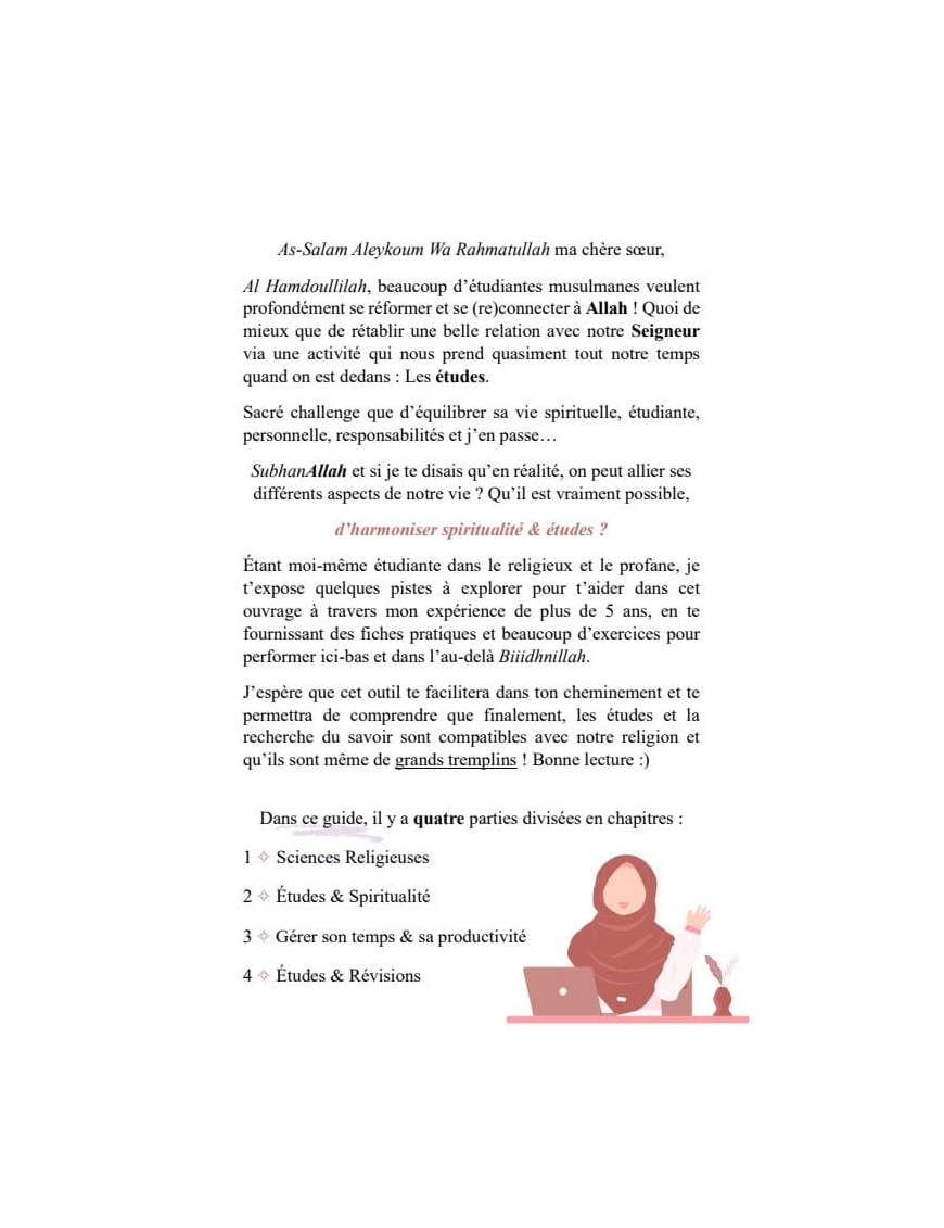 De la gestion du temps à l’organisation, cet ouvrage te révèle les secrets pour exceller dans tes études. À travers des conseils pratiques et des exercices, ce guide t’accompagne dans la transformation de tes études en un tremplin pour t’élever vers ton Créateur, afin de goûter à la félicité dans les deux mondes !